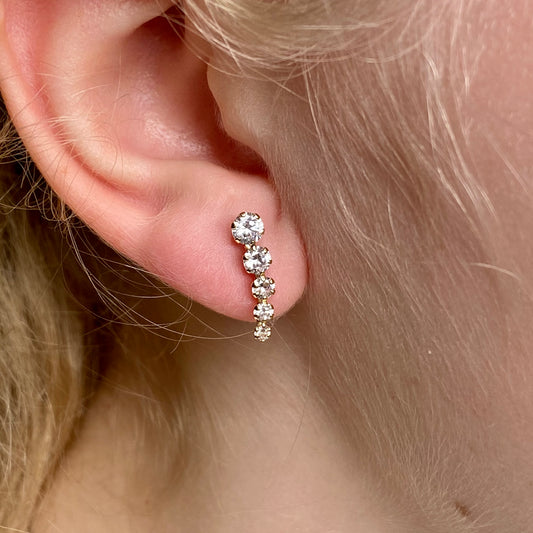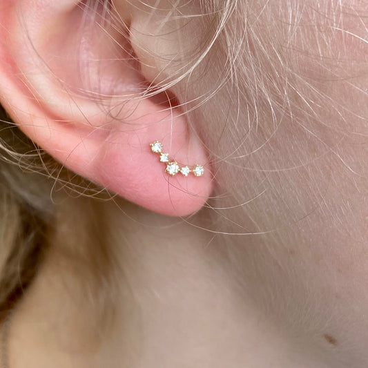 9ct Gold Five Stone CZ Stud Earrings | Climbers