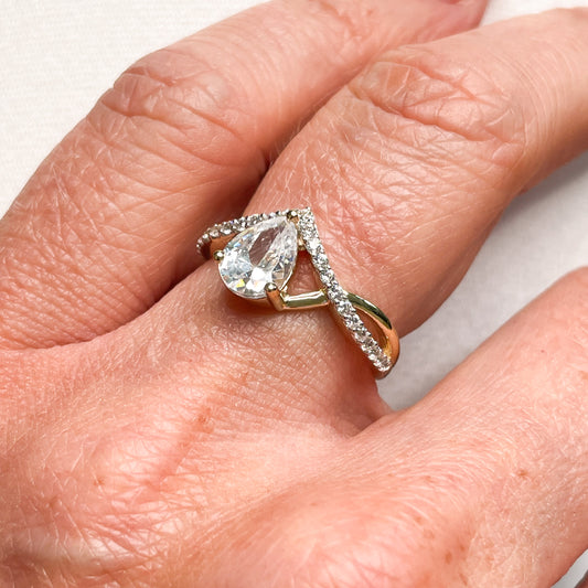 Sold out9ct Gold CZ Wishbone Solitaire Ring