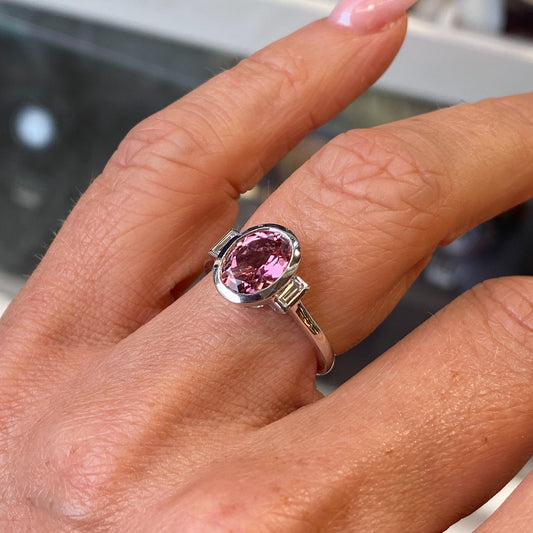 Platinum Radiant Morganite & Diamond Engagement Ring