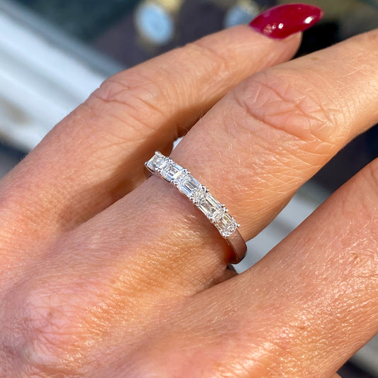 Platinum Emerald Cut Five Stone Diamond Eternity Ring | 0.95ct