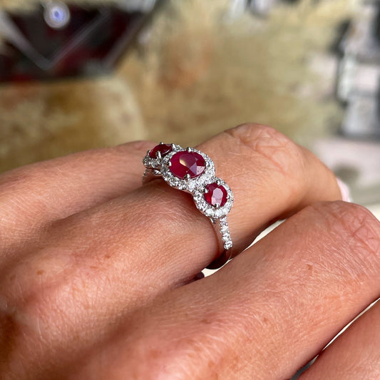 Platinum Ruby & Diamond Trilogy Garland Ring | Diamond Shoulders