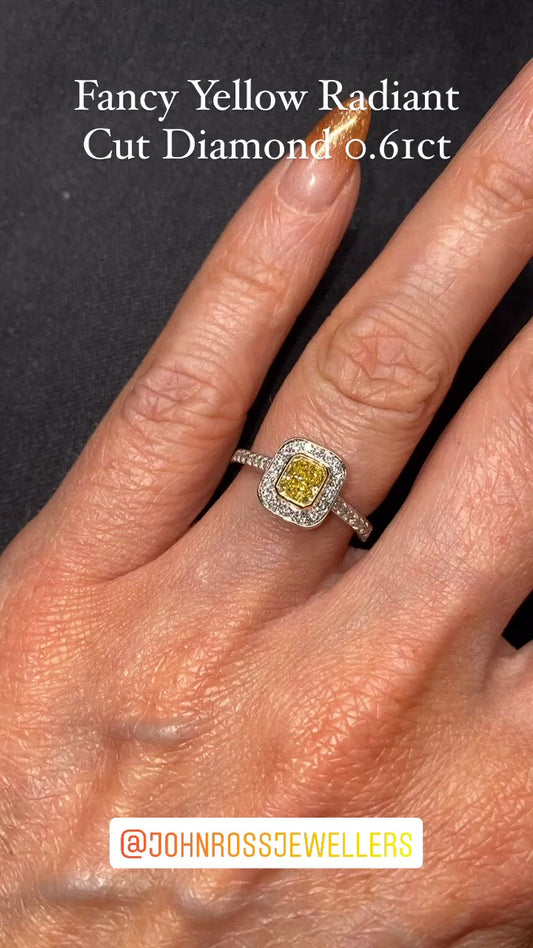 Platinum Fancy Yellow Radiant Cut Diamond Ring