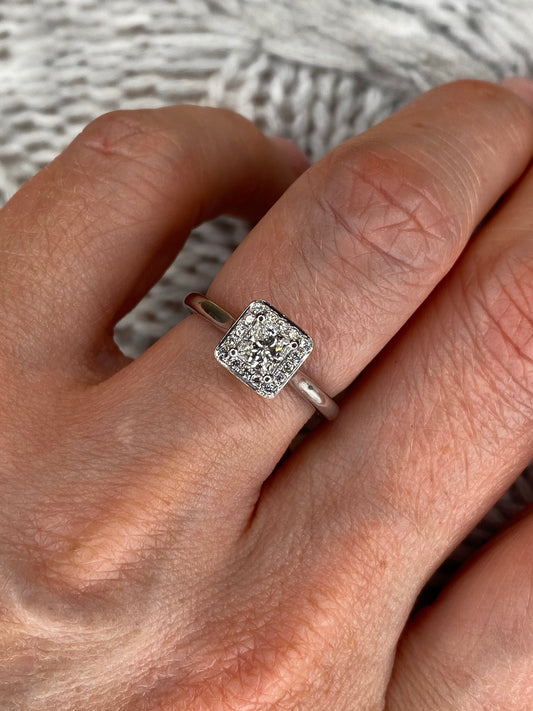 Platinum Halo Diamond Solitaire Engagement Ring | 0.49ct