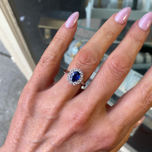 Platinum Sapphire & Diamond Diana Cluster Ring