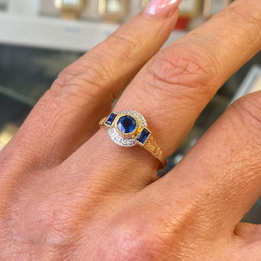 9ct Gold Sapphire & Diamond Quatrefoil Necklace