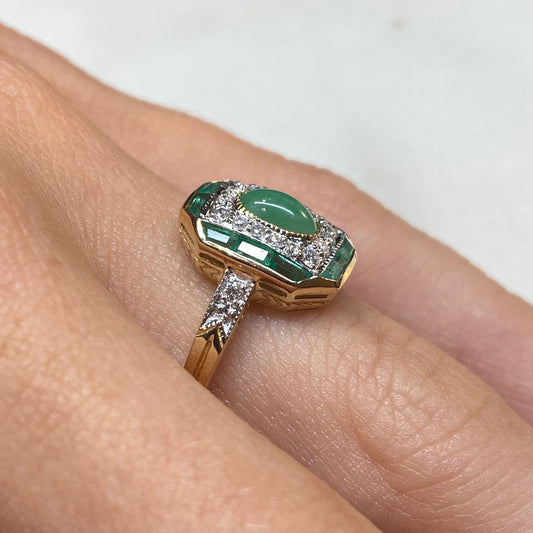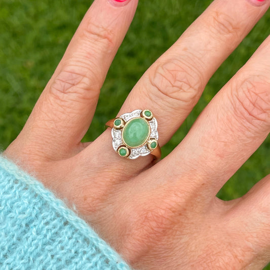 9ct Gold Green Amethyst, Emerald & Diamond Ring