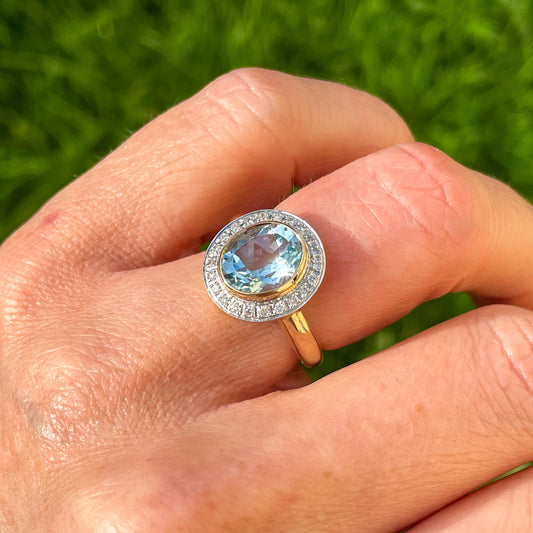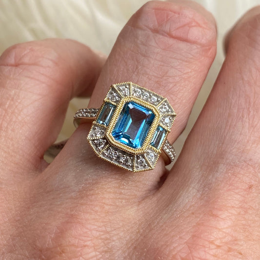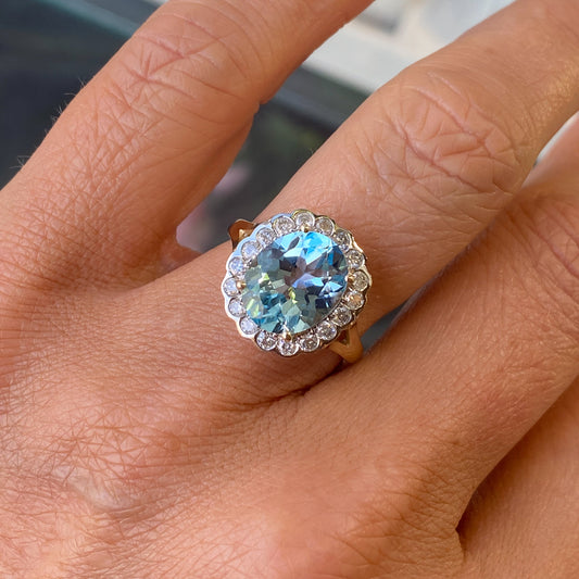 9ct Gold Blue Topaz & Diamond Cocktail Ring