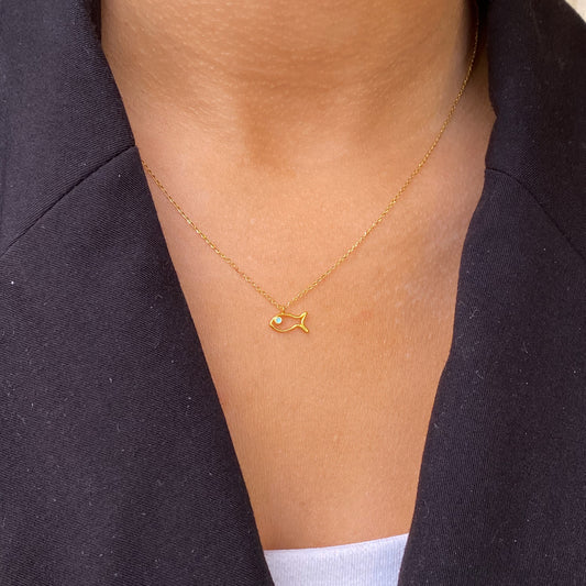 9ct Gold Darling Turquoise Enamel Fishy Necklace