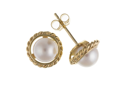 9ct Gold Freshwater Pearl Braided Earrings | 8mm