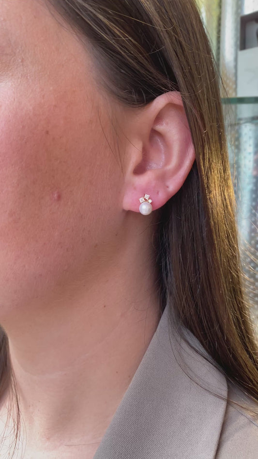 9ct Gold Freshwater Pearl & Princess CZ Trio Stud Earrings