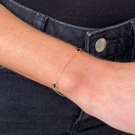 Sold out9ct Gold Onyx Quatrefoil Bracelet