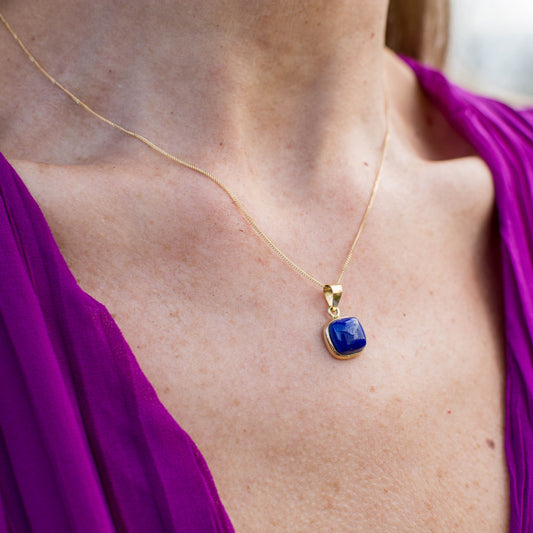 9ct Gold Lapis Lazuli & Diamond Geometric Necklace