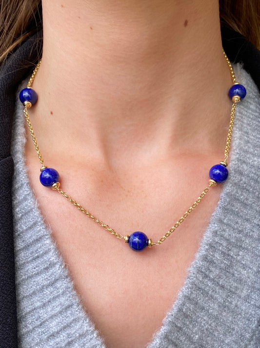 18ct Gold Mini Lapis Lazuli Station Necklace