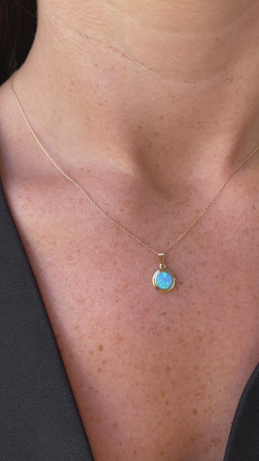 9ct Gold Domed Blue Opalique Necklace