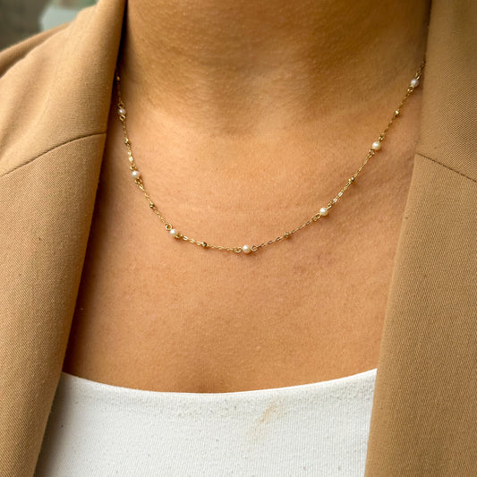 9ct Gold Freshwater Pearl & Bead Station Necklace | 18"