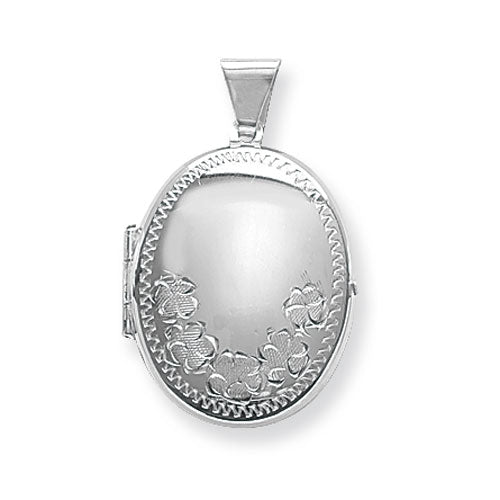 Silver Classic Floral Oval Locket and Chain