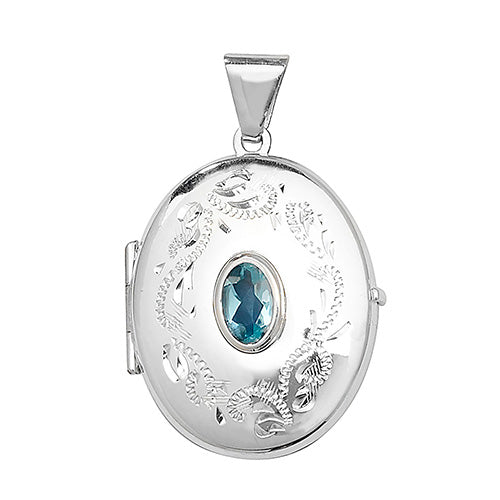 Silver Blue Topaz Oval Locket and Chain