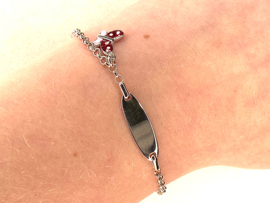 Silver Child's Identity Bracelet - Red & Pink Butterfly Charm