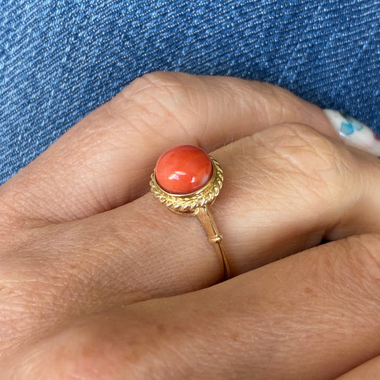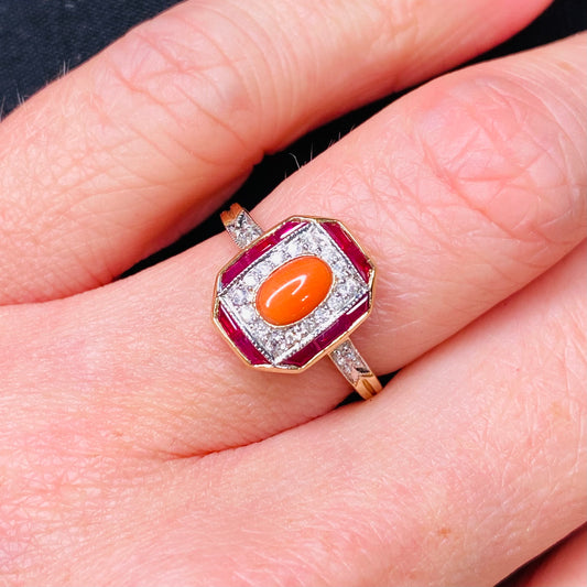Sold out9ct Gold Coral, Ruby & Diamond Ring