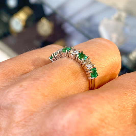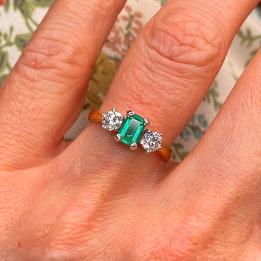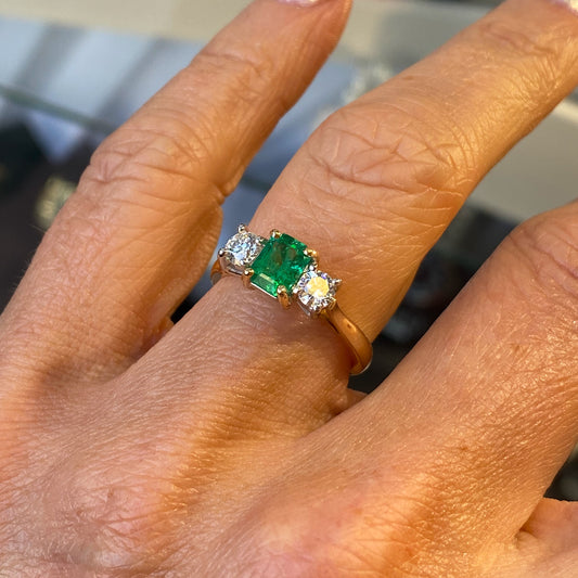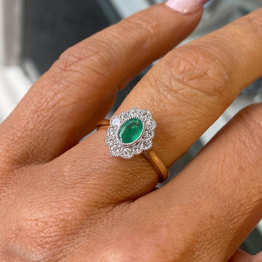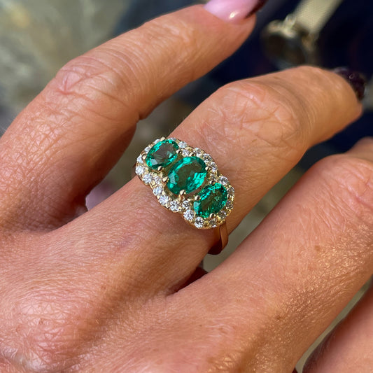 18ct Gold Emerald & Diamond Ring | Emerald Cut Cluster