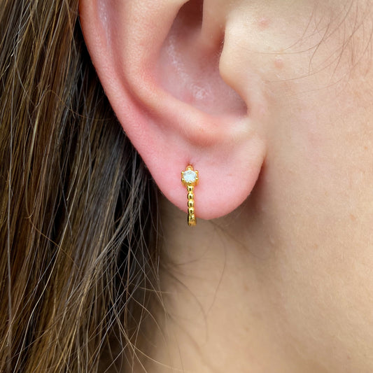 Sunshine Fine CZ Set Beaded Huggie Hoop Earrings