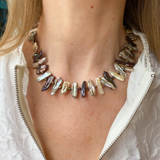Sold outAubergine & Mink Biwa Pearl Necklace