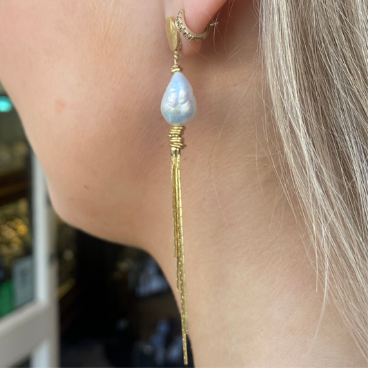 Baroque Long Drop Earrings | Arjess | Freshwater Pearl