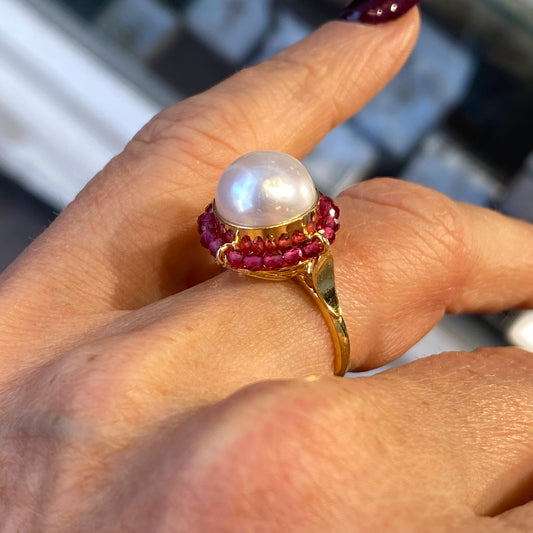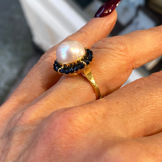Sold outBaroque Pearl & Crystal Ring | Blue