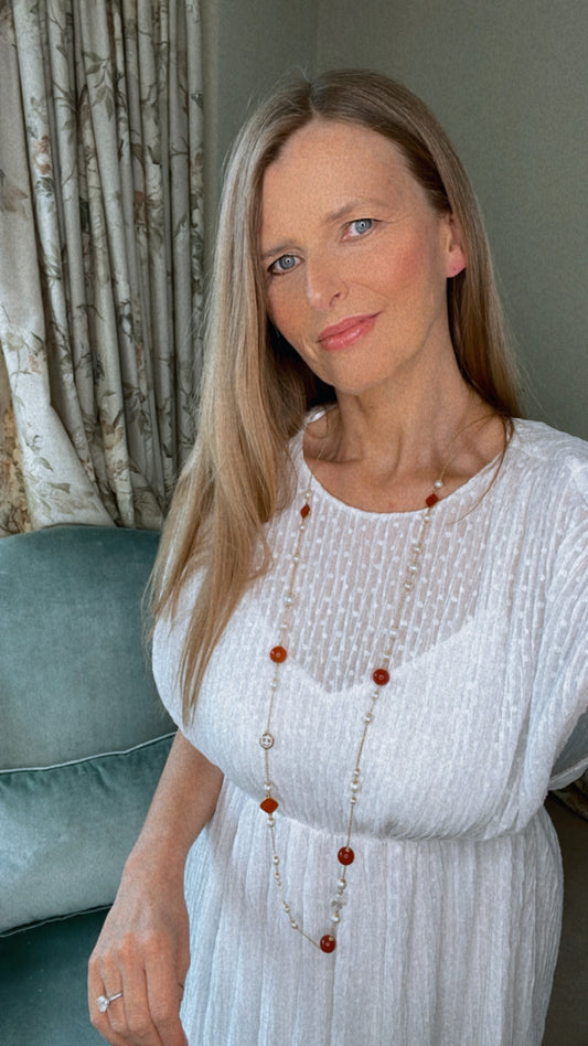Carnelian, Cameo, Mother of Pearl & Freshwater Pearl Necklace |120cm