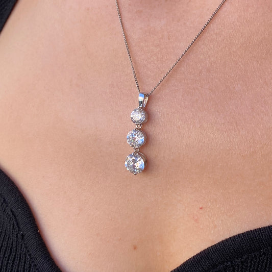 Silver CZ Trilogy Huggie Hoop Earrings | 11mm