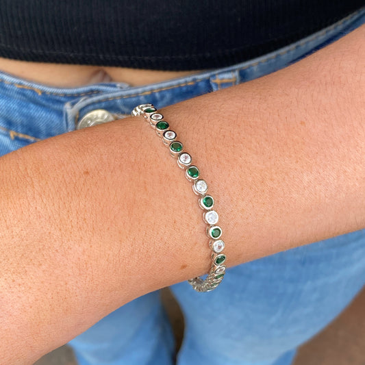 Silver CZ Bezel Set Tennis Bracelet | Emerald Green