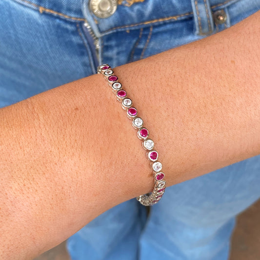 Silver CZ Bezel Set Tennis Bracelet | Ruby Red
