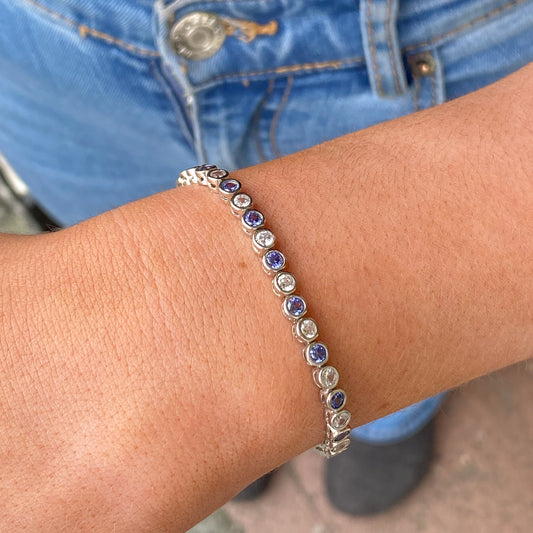 Silver CZ Bezel Set Tennis Bracelet | Tanzanite Indigo