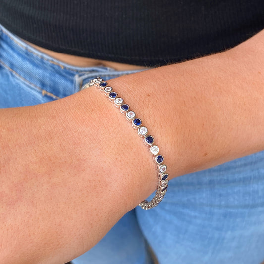 Silver CZ Bezel Set Tennis Bracelet | Sapphire Blue