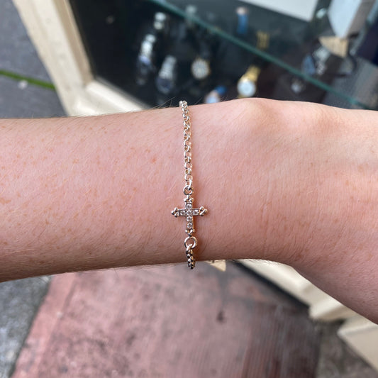 Silver CZ Cross Charm Bracelet