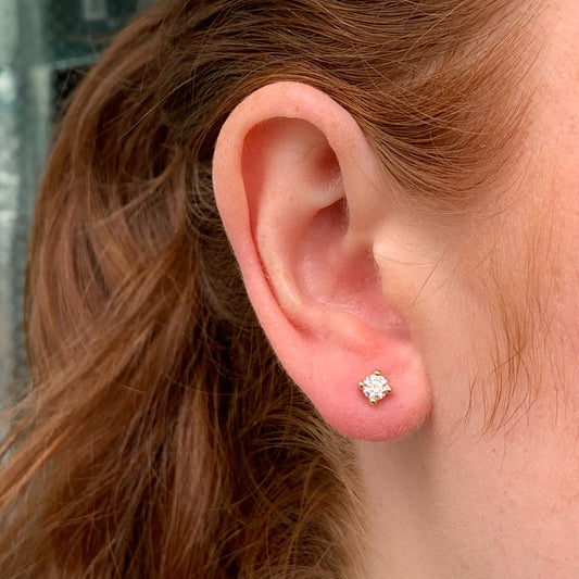14ct Gold Four Claw CZ Stud Earrings | 4mm