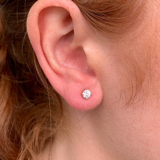 14ct Gold Four Claw CZ Stud Earrings | 5mm