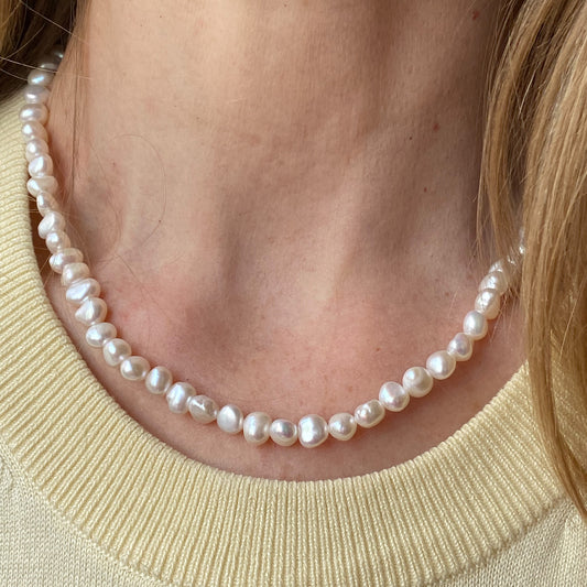 Silver Freshwater Pearl Station Necklace | 41-46cm