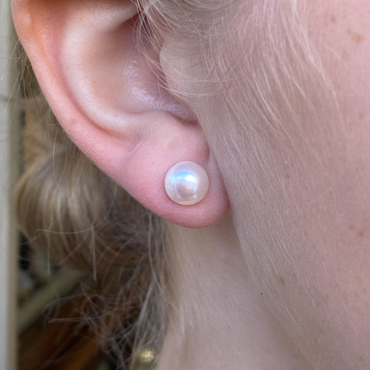 Silver Freshwater Pearl Bouton Stud Earrings | 8-9mm