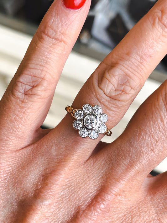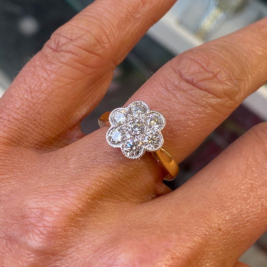 18ct Gold 1ct Diamond Flower Cluster Ring