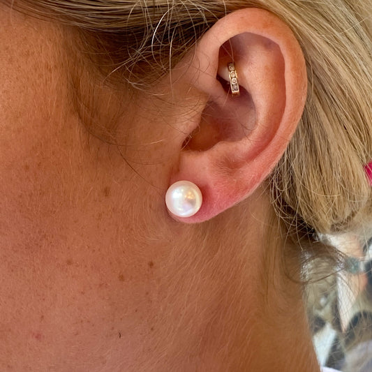 18ct Gold 12mm Pearl Button Stud Earrings