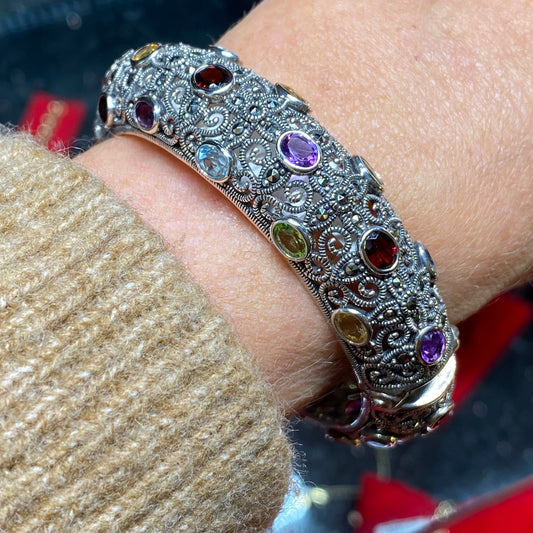 Silver Marcasite & Gemstone Bangle