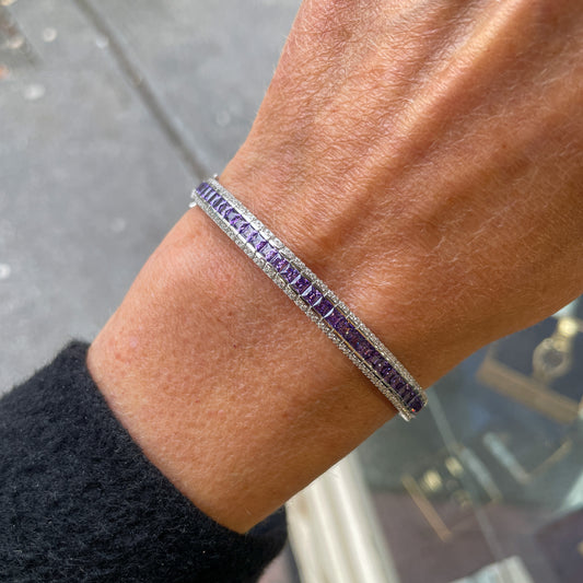 Silver Created Amethyst & CZ Bangle
