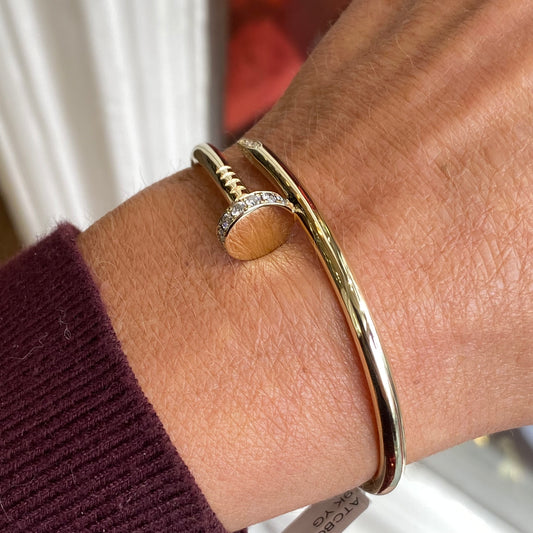 9ct Gold Diamond Set Hinged Nail Bangle