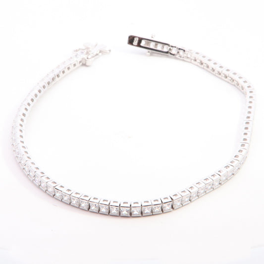 Silver 3.2mm Princess CZ Tennis Bracelet | 19cm