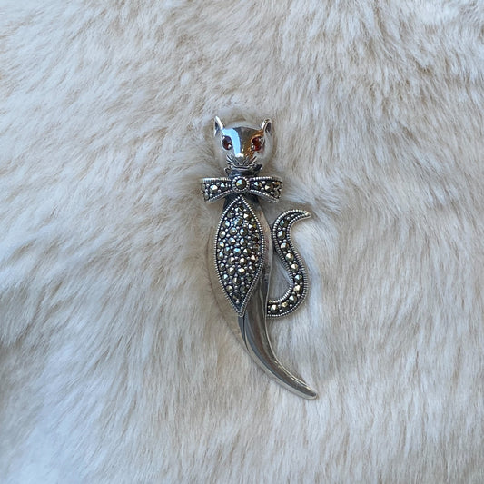 Silver Blue Topaz & Marcasite Vintage Style Brooch