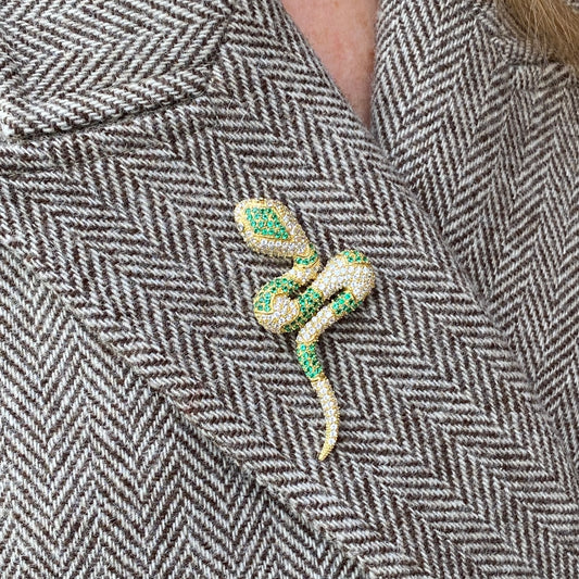 Sunshine CZ Serpent Brooch | Emerald Green