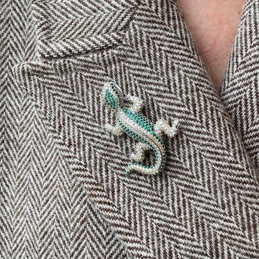 Sunshine CZ Gecko Brooch | Emerald Green