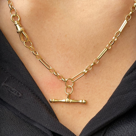 9ct Gold Figaro T-Bar Chain | Albert Swivel