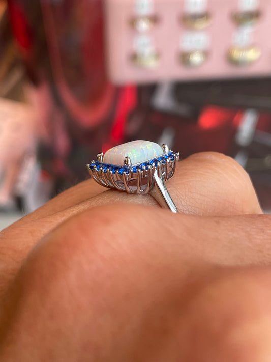 Silver Oval Diana Cluster Ring | Opalique & Sapphire Blue